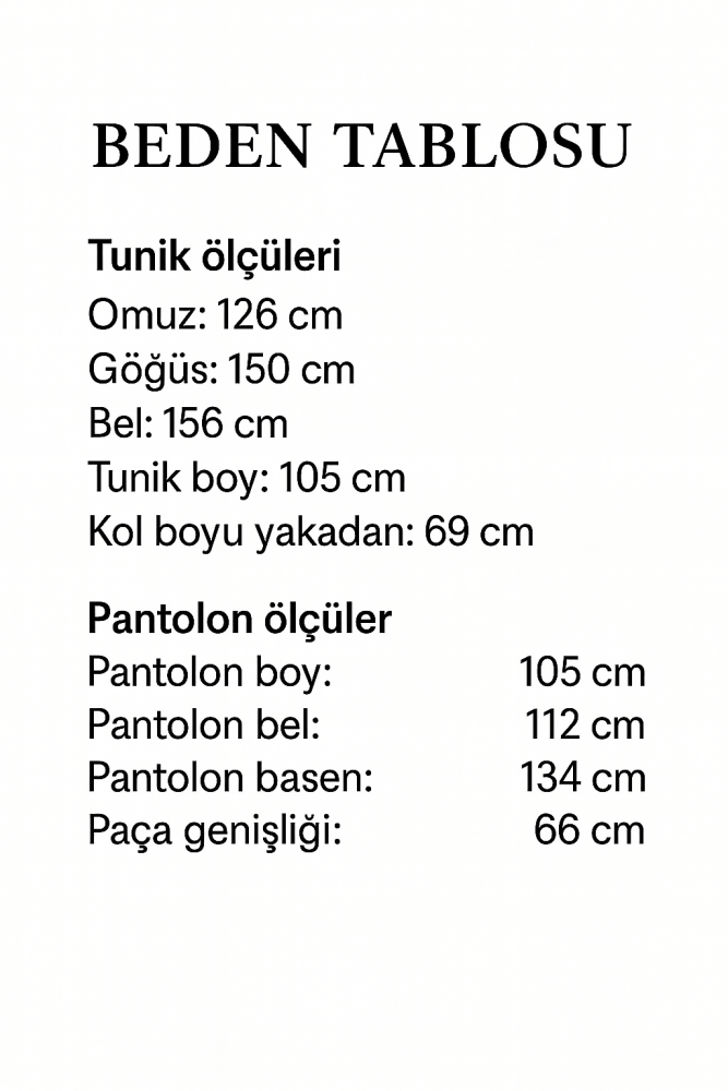 Modern ve dinamik duruşuyla dikkat çeken Sandy Takım, hem günlük kullanımda hem özel anlarda şıklığınızı yansıtmanızı sağlar. Sandy kumaşın dökümlü ve esnek yapısı sayesinde vücuda rahat oturur, gün boyu konfor sunar. Minimal tasarımı, zarif dikiş detaylarıyla birleşerek tesettür stiline sade ama güçlü bir dokunuş katar. Üst kısmın salaş formu ve alt parçasının rahat kesimi, her vücut tipine uyum sağlar. Modaya ayak uyduran kadınlar için gardıropların vazgeçilmez parçası olacak.