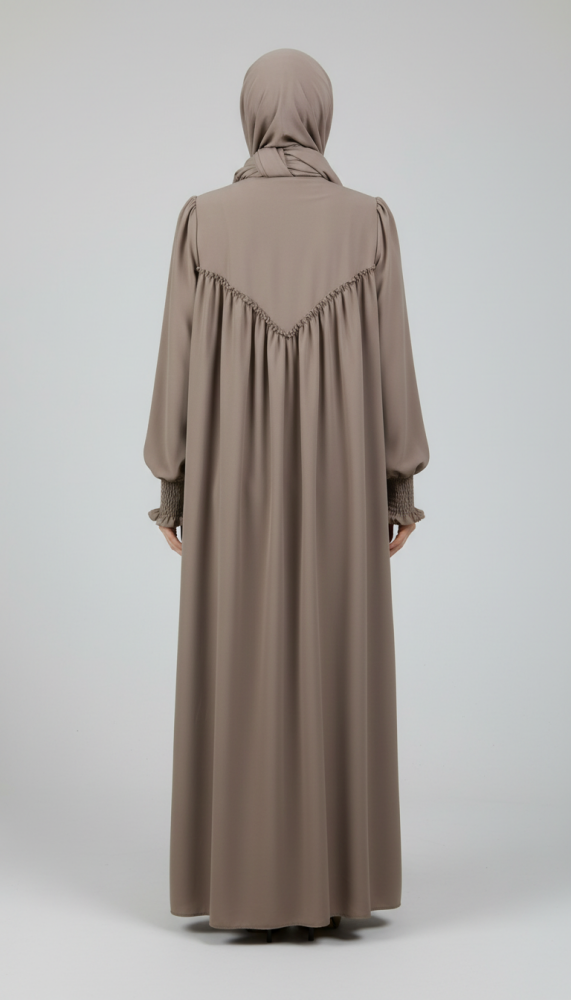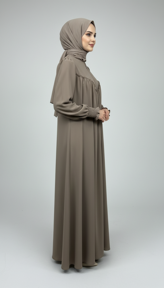 V Roba Büzgülü Ferace - Bej